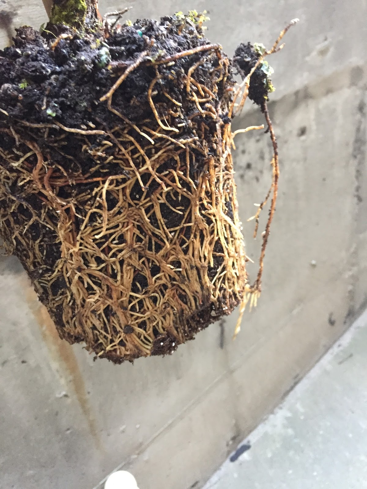 I have only recently learned what "root-bound" means, but it's what happens when you grow a plant in a pot that's too small for it. The roots have nowhere to go, so they wrap around the root ball. It's